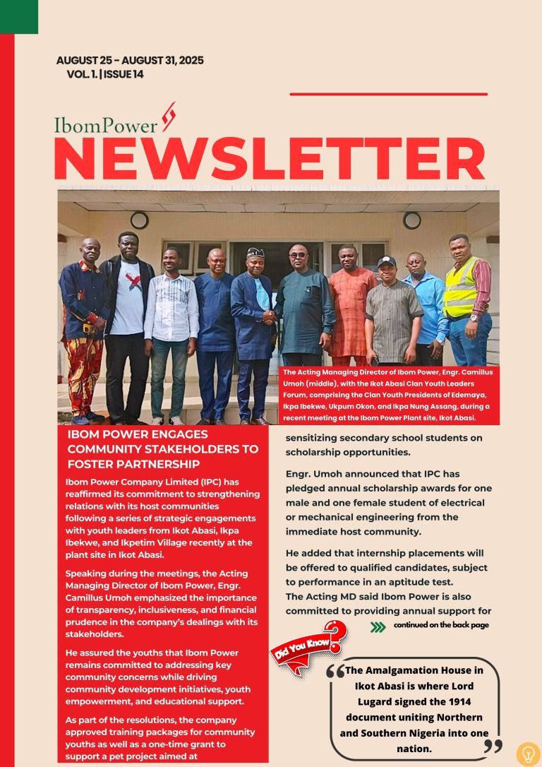 The Acting Managing Director of Ibom Power Company Limited, Engr. Camillus Umoh, led the company’s senior management team on a strategic visit to its sole